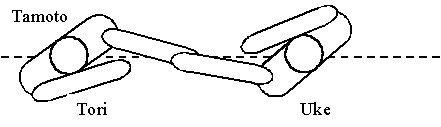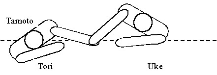 Aihanmi, souhlasné postavení je charakterizováno stejně orientovaným postojem toriho a ukeho.