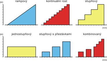 - submaximální zatížení (nedosahuje max. hodnot funkčních ukazatelů, je méně rizikové, vhodné pro průměrnou populaci)